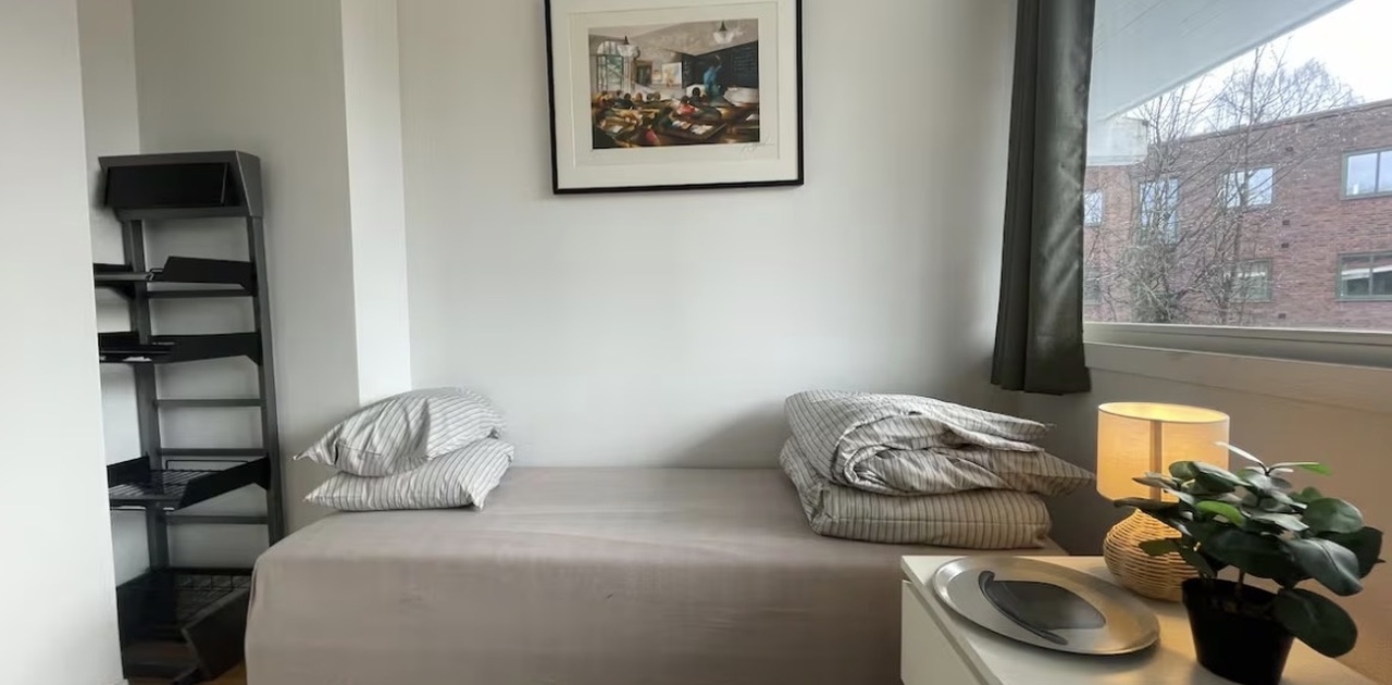 3 møblerte rom med enten enkelt seng eller dobbeltseng i en leilighet i nærheten av UIO, hvert rom leies ut for 9000kr per måned, strøm inkludert. Leies ut i en måned eller 2.
