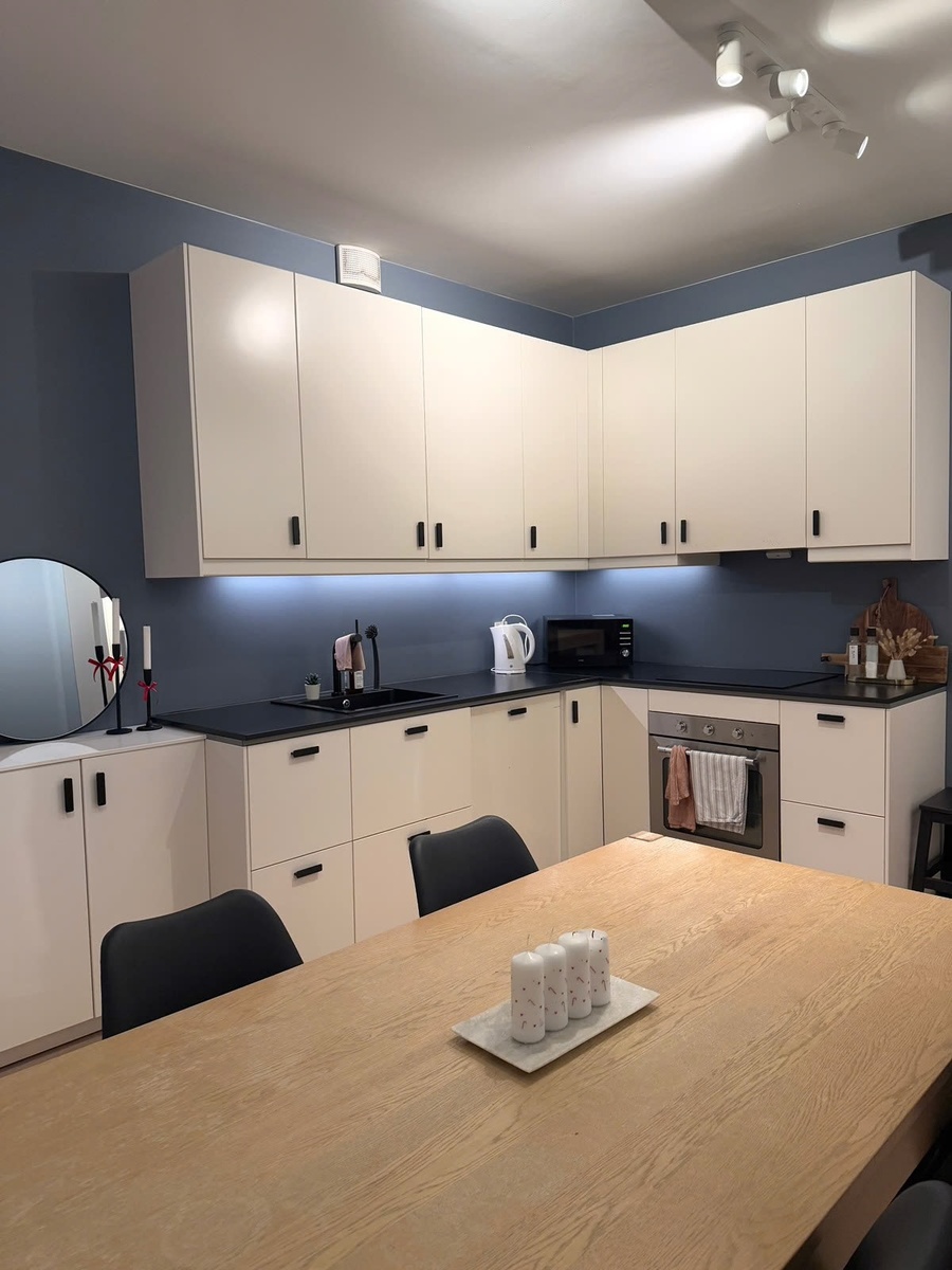 Fellesområder er ferdig møblert inkl. hvitevarer som vaskemaskin og eget kjøleskap.