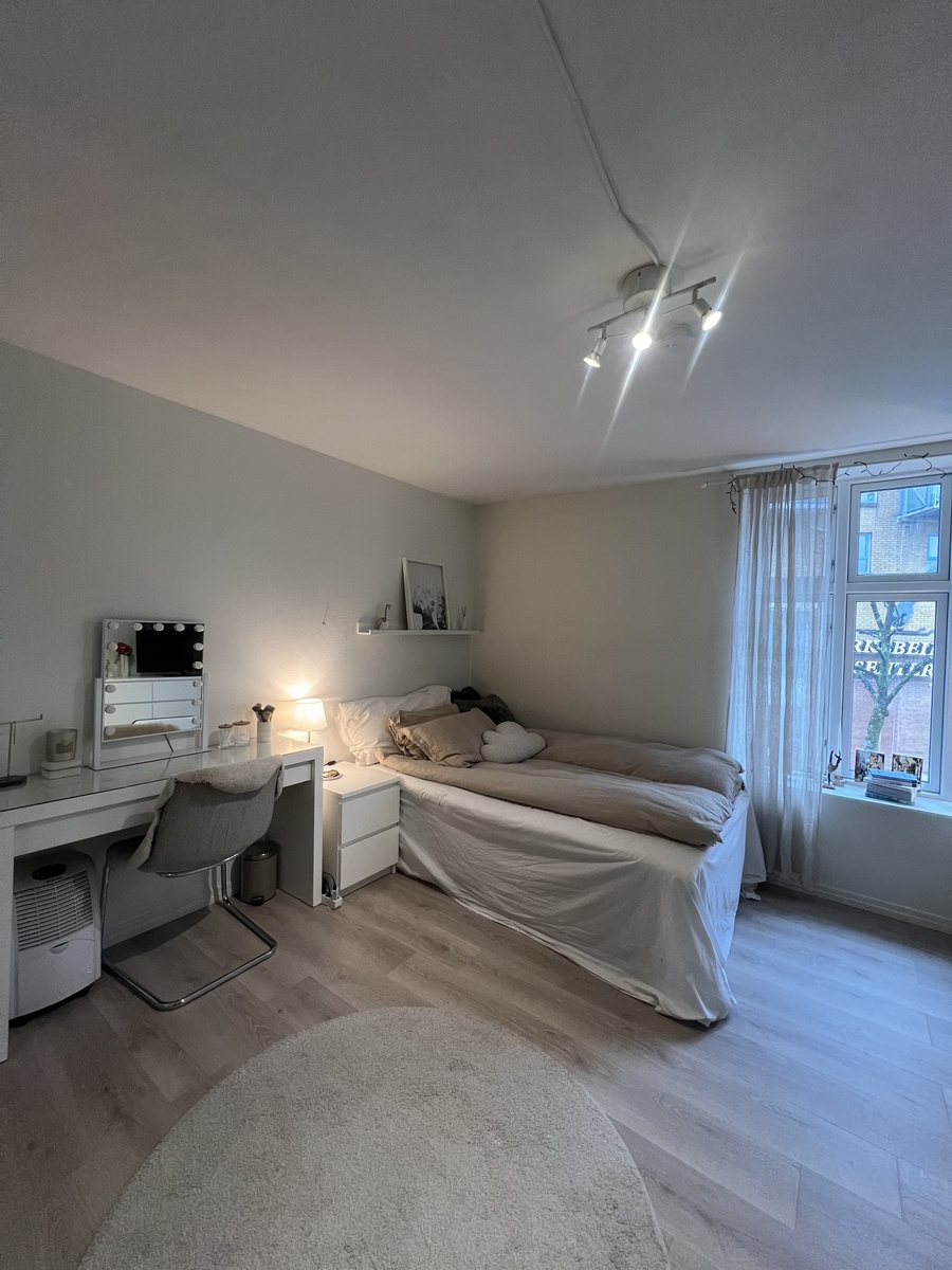 Jeg leier ut rommet mitt i kollektiv da jeg skal på utveksling i denne perioden. Leier ut for perioden 1. juni (eller så fort som mulig etter denne datoen) til 1. januar 2027. Rommet er møblert, med stort skap, skrivebord, seng på 1.20, sofa og kommoder. Leiligheten ligger svært sentralt, kun 1 minutt unna bryggen og 10 minutter gange til sentrum. Kollektivet består av fire rom med felles kjøkken og bad.
