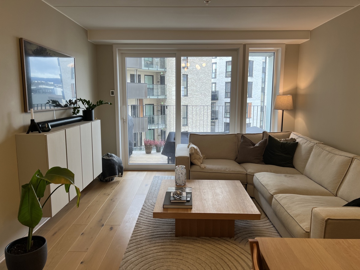 Stilren og møblert 3-roms fra 2019 med stor balkong | Felles takterrasse | Strøm og internett inkludert | Garasje*