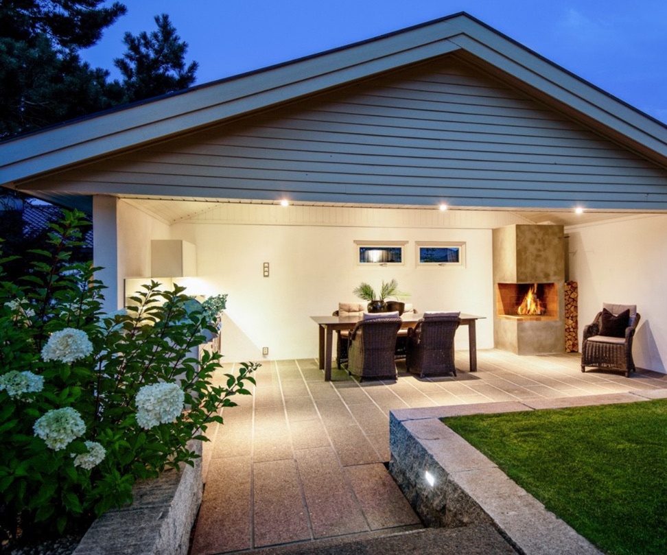 Tomten er på nær 900 kvm og ble betydelig oppgradert i 2012, med nydelig hage og flotte uteplasser. Den ene er en åpen hagestue med peis og utekjøkken med innlagt vann og integrert grill. Hagen har også et lekestativ. Garasje med elbillader.