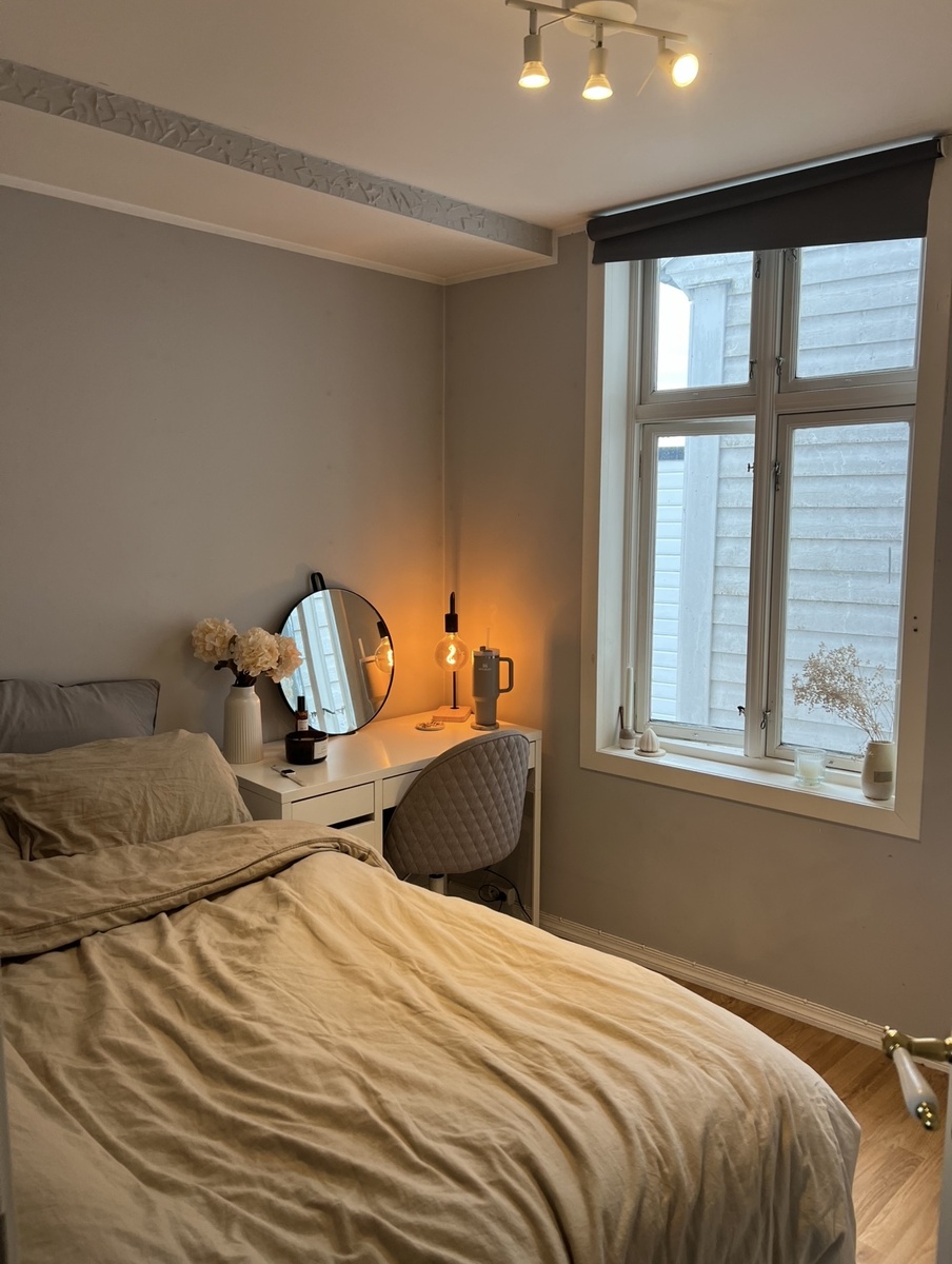 Leier ut et rom i en leilighet med to soverom i Sandviken/Ladegårdsgaten. Leiligheten ligger i et rolig og hyggelig område med kort vei til flere dagligvarebutikker, som Joker, Meny Støletorget, Bunnpris (søndagsåpen) og Kiwi – hvor den nærmeste ligger bare noen få meter unna. Det er kun 5–7 minutters gange til Bryggen og sentrum. I tillegg er det flotte turmuligheter i området, med gangavstand til både Stoltzekleiven, Fløyen og Fjellveien. Området er svært trivelig og består av en god blanding av familieboliger og studenter. Det er også gode bussforbindelser både mot ytre Sandviken og inn til sentrum.