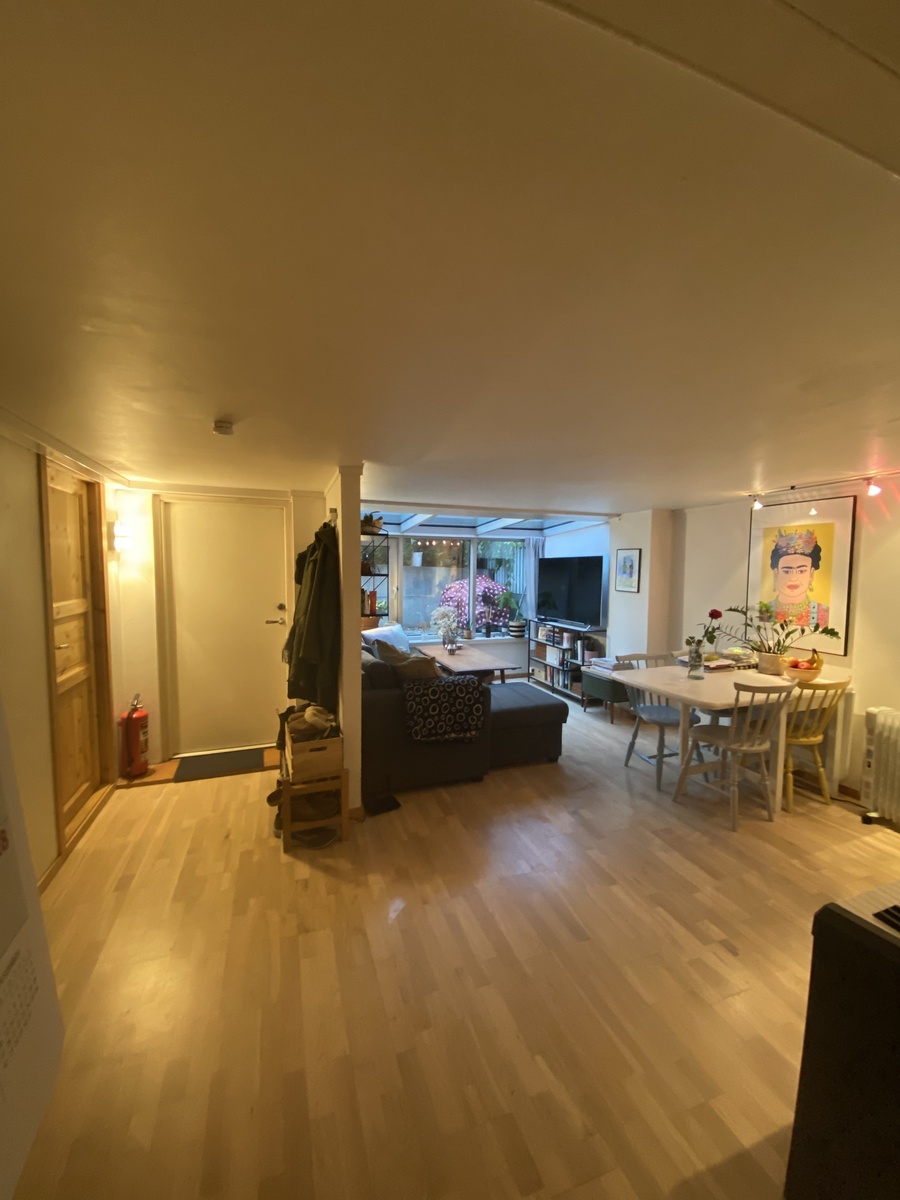 Lys stue med peisovn, stort bad med badekar, stort soverom med speilgarderobe.Varmekabler i alle gulv. Egen uteplass. Egen inngang. Egen bod/vaskerom. Passer for par eller single.