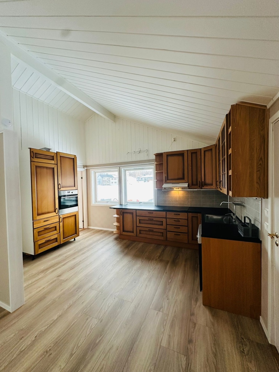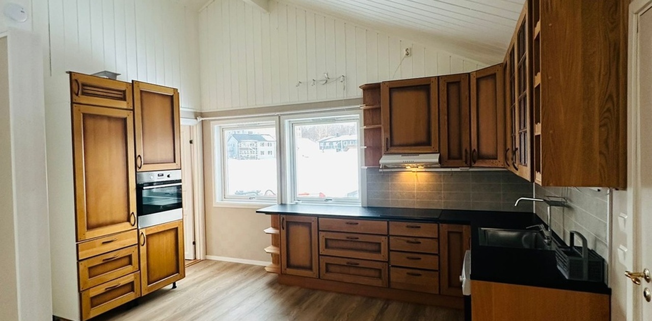 Leiligheten er i ett rolig og sentralt nabolag på Tverlandet med kort vei til både buss og tog.