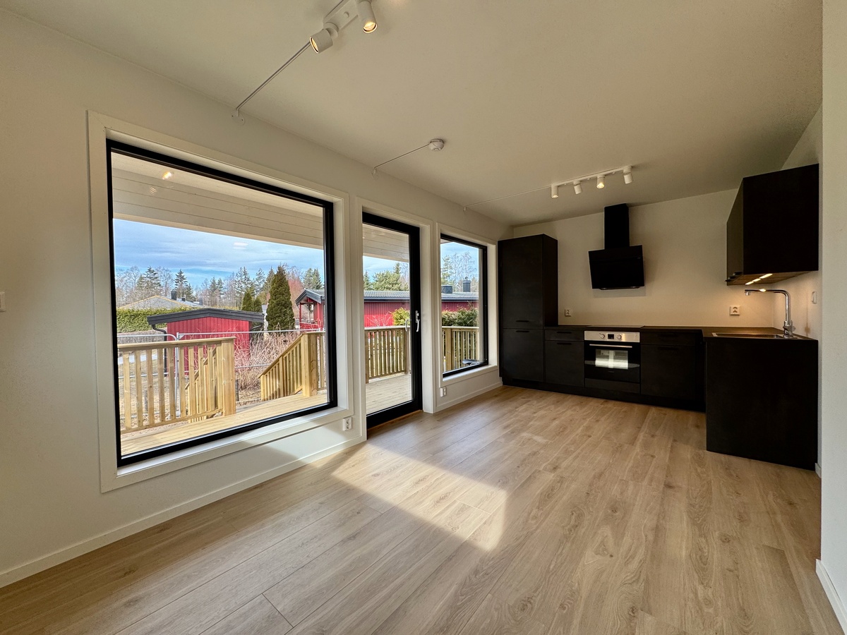 Leiligheten ble ferdigstilt i februar 2025 og er malt i lyse, tidsriktige farger. Med store vindusflater får du rikelig med naturlig lys, noe som skaper en luftig og innbydende atmosfære.