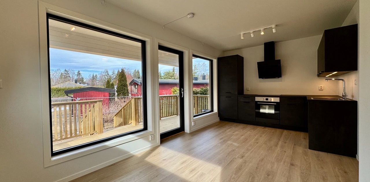 Nyoppført og lys 3-roms leilighet med terrasse og carport LEDIG