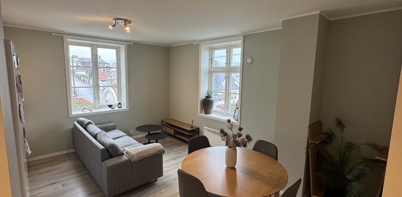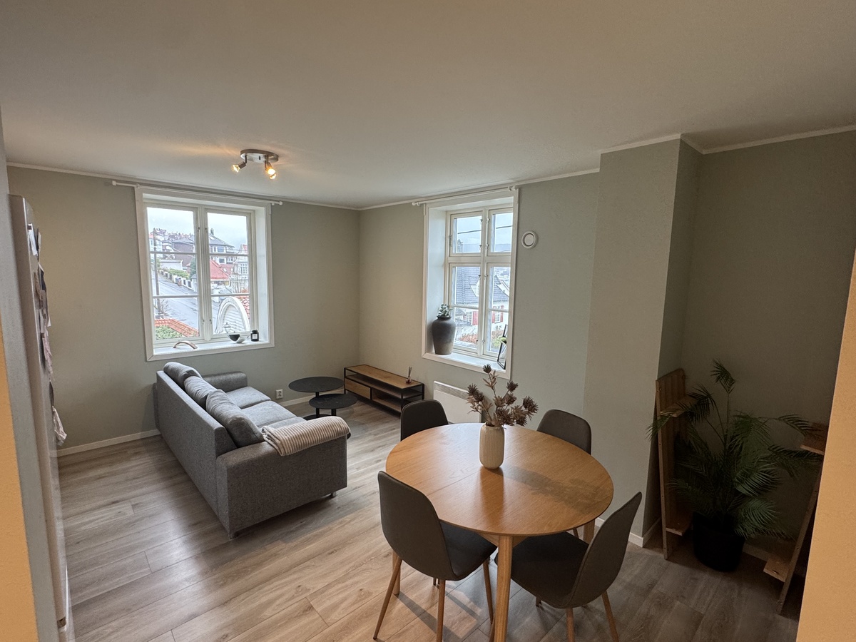Lys og moderne leilighet til leie i Sandviken, rett nedenfor Stoltzekleiven. Området har svært gode bussforbindelser og passer perfekt for studenter.