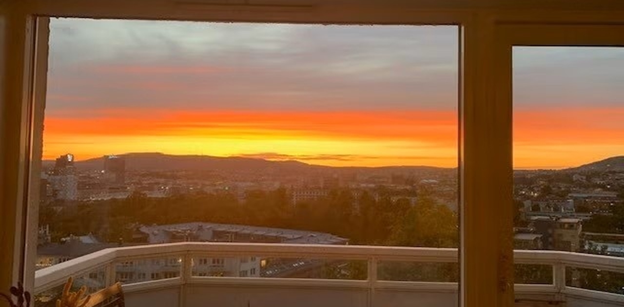 -roms hjørneleilighet med fantastisk utsikt over Oslo og Oslofjorden. Romslig balkong, vedovn og malte tregulv, regndusj og et dypt go bredt badekar. Designkjøkken med stort SMEG kjøleskap og 90 cm bred komfyr. Kun 15 minutters gange fra Oslo S og 4 minutter fra buss og trikk. Nymalte gulv og vegger. Dagligvarebutikker, italiensk pizzarestaurant og thai/sushi take away i 1-4 minutters gangavstand. Turmuligheter i Ekebergparken kun 5 minutters gange unna og tilgjenglig via en sti gjennom skogen bak leiligheten. Parkeringsplass kan leies for 300 kr per måned. Mulighet for å leie plass med ladepunkt for elbil. 2 boder (tilsammen ca 8 kvm) og internett (fiber) inkludert i prisen.