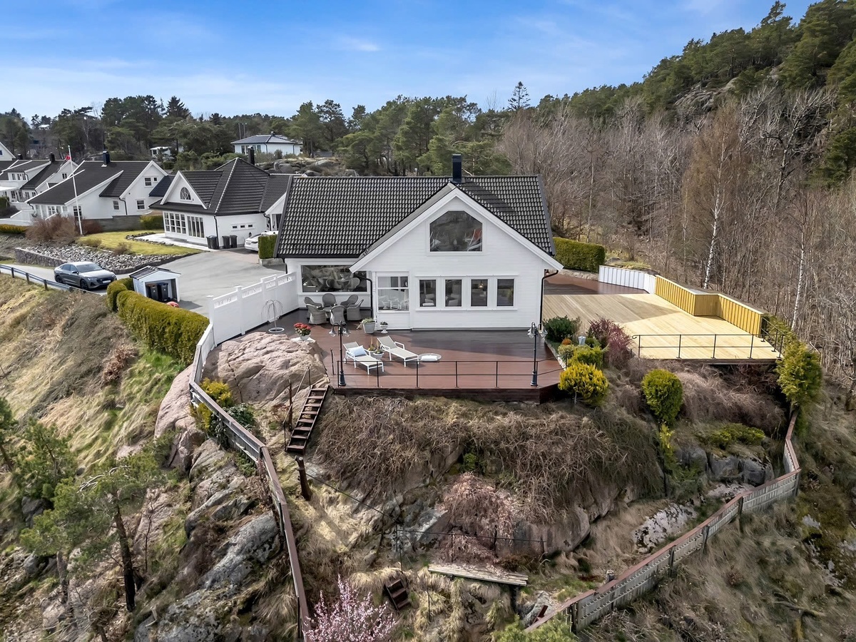 • Solrik terrasse med solstoler og spisebord – med uforglemmelig panoramautsikt
