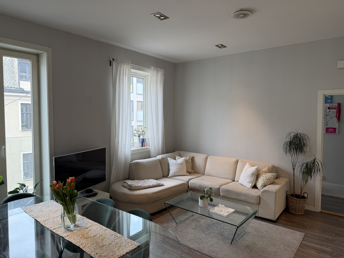 Velkommen til en stilfull og lys 5-roms i 3 etasje! Leiligheten består av stue med åpen kjøkkenløsning, 4 soverom, en ekstra stue (kinorom) og 2 fullverdige bad med opplegg for vaskemaskin. Leiligheten har en flott beliggenhet i et populært område, med sine grønne parker, yrende folkeliv og med alle fasiliteter som butikker, restauranter og kafeer innen kort avstand.
