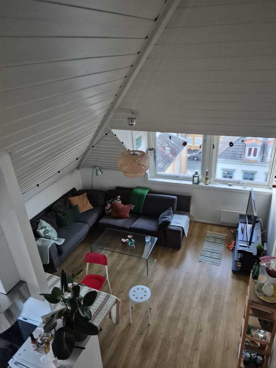 We are looking for three new roommates to join our shared flat in Nedre Møllenberggate in summer. Our flat is located on the third floor and has 5 bedrooms, a kitchen and living room, one spacious bathroom (with toilet, shower, and washing machine), plus an additional separate toilet. Since we are on the top floor, we have a beautiful view over Trondheim and the fjord :)