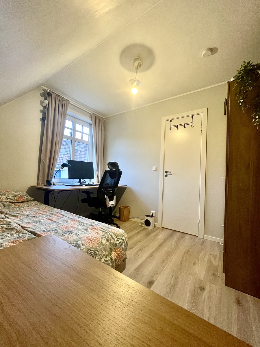 Jeg fremleier rommet mitt i et lyst, trivelig og nylig oppusset kollektiv sommeren 2026. Rommet er på 9,5 kvm, har stort vinduer med mye naturlig lys. Soverommet leies ut møblert med 120-seng, stor kommode, garderobeskap, skrivebord og kontorstol.