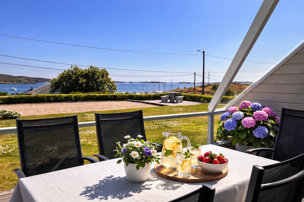 Leiligheten består av tre soverom, alle med dobbeltseng og garderobeskap, to bad, samt et velutstyrt kjøkken. Stuen er lys og innbydende, med direkte utgang til en stor terrasse hvor du kan nyte flott utsikt over havnen.