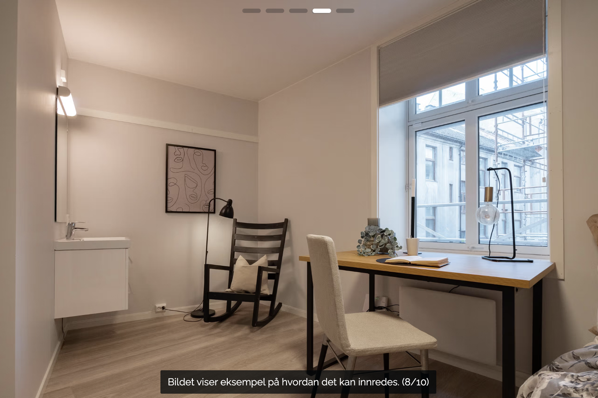 - Rom i kollektiv (deler kjøkken og 2 bad med 3 andre) (kjøleskap deles med 1)