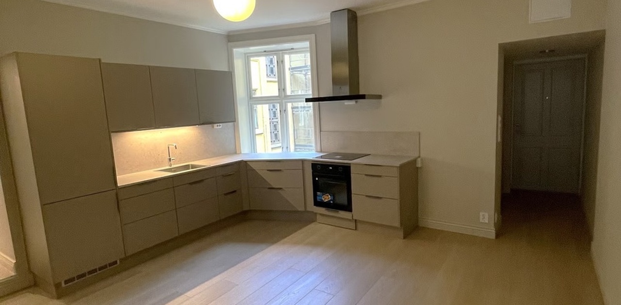 Leiligheten har en hyggelig stue/ kjøkkenløsning og generøs takhøyde, entré, flislagt bad, fem store soverom med god plass til dobbeltseng. Hele leiligheten er totalrenovert i 2023. Det er lagt vekt på gjennomgående høyt materialvalg ved oppussing som enkelt kan ses og burde oppleves. Dette er det mange vil betegne som en drømme leilighet i et av Oslos mest attraktive boligstrøk. Bygget har egen vaktmester og trappevask inkludert i leien.