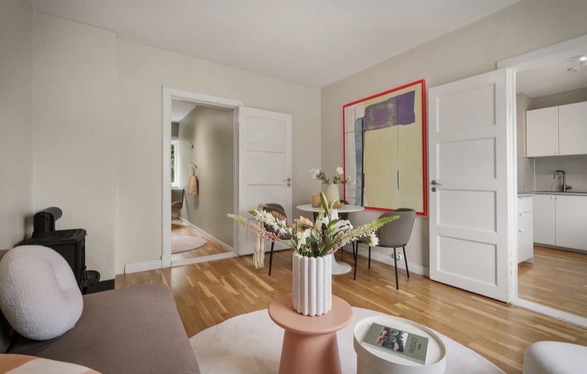 Bildene er fra salgsannonsen, og møbleringen avviker derfor litt.