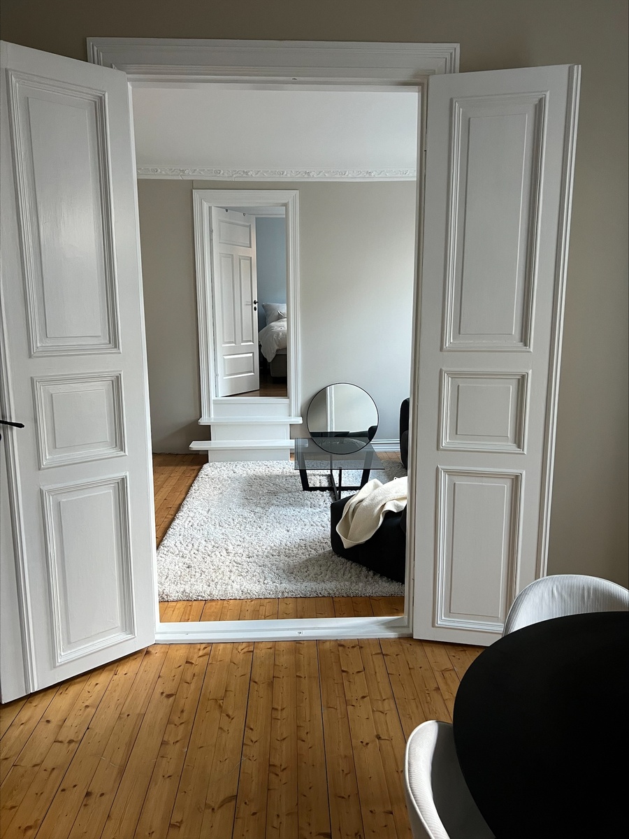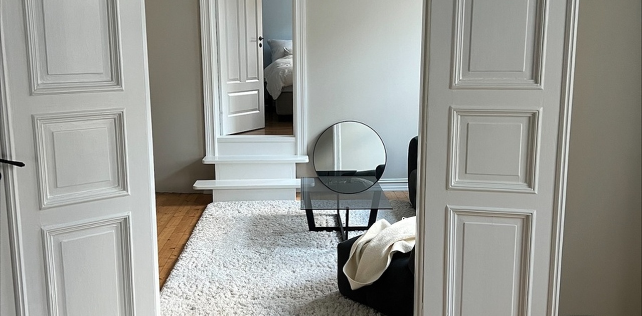 Klassisk, lys og pen 3-roms hjørneleilighet med rosetter og stukkatur