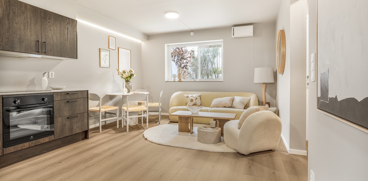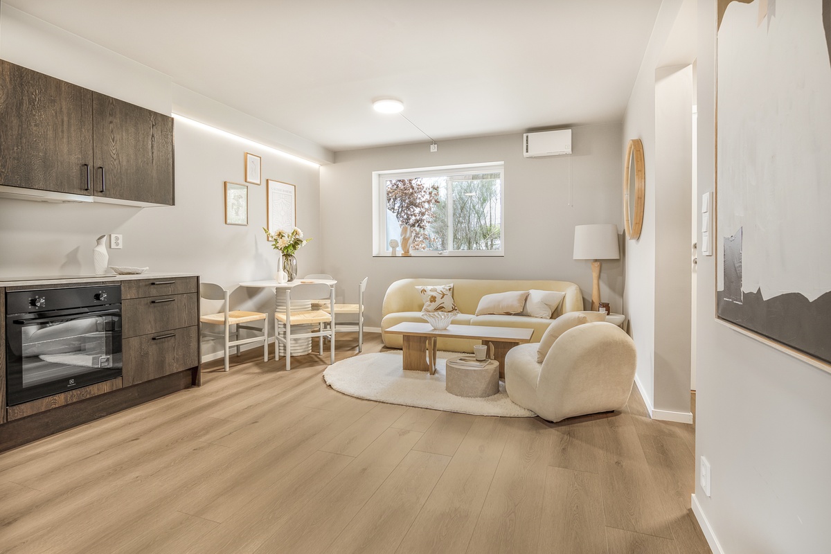 Totalrenovert og ubebodd 2-roms leilighet i 1. etasje i Helleveien 38B, Sandviken – kun ca. 200 meter fra NHH.