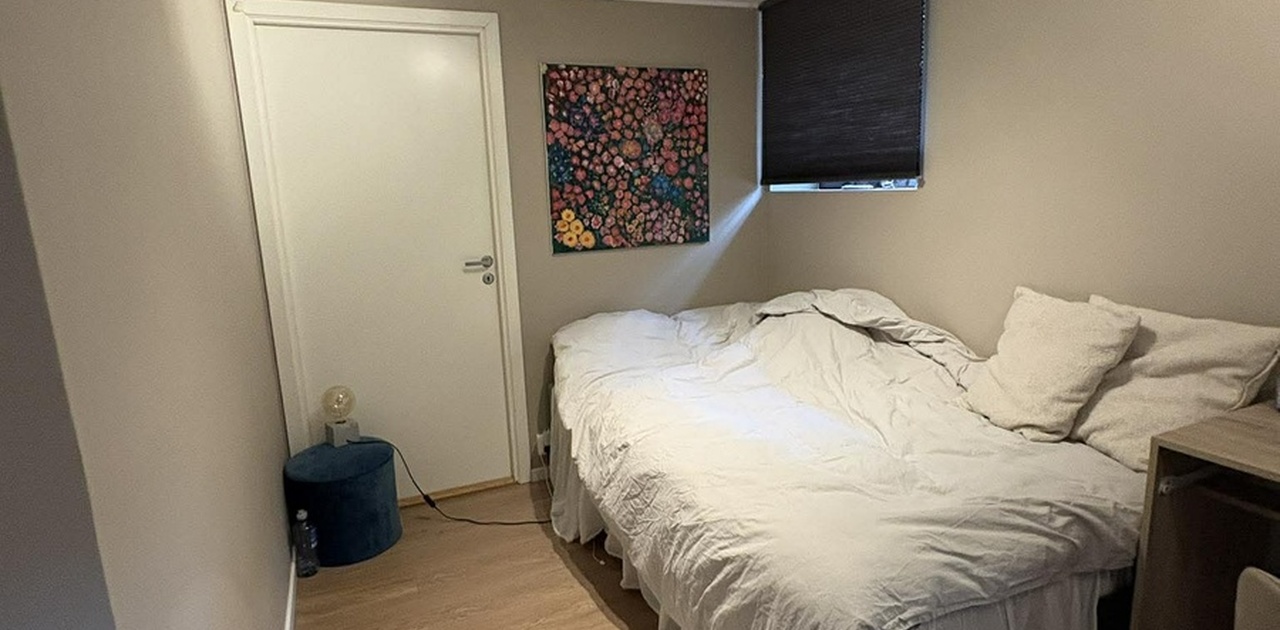 Leiligheten har plass til 4 beboere, alle med hvert sitt soverom. Vi deler et moderne kjøkken og bad, hvor kjøkkenet også fungerer som felles oppholdsrom. Leiligheten er utstyrt med oppvaskmaskin, to kjøleskap, fryser, vaskemaskin og tørketrommel.