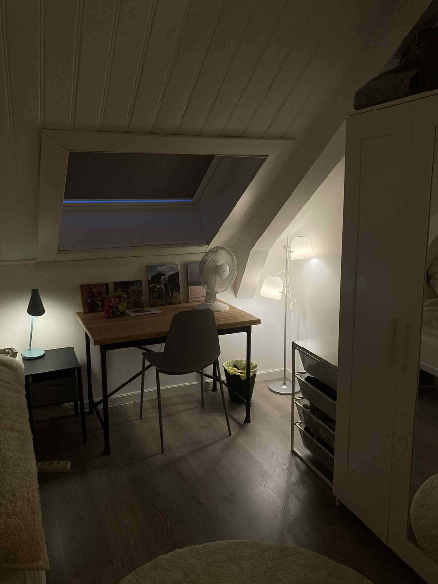 Rommet er på 12 kvm og leies ut møblert med seng, skap og skrivepult. Ellers består kollektivet av 6 soverom, stue, kjøkken, ett bad og bod i gang og kjeller. Strøm og internett kommer utenom leien.