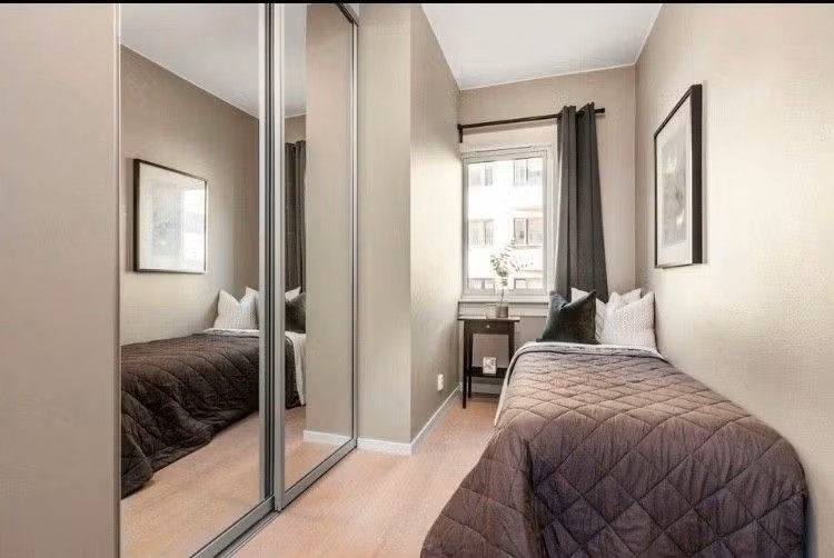 Det leies ut et fint rom på ca. 10 kvadratmeter i pent, nyoppusset kollektiv på Adamstuen. Rommet som leies ut har har en stor, dyp og praktisk skyvedørsgarderobe med speil. Sengen som står der nå er 90, men det skal være plass til en 1.40-seng. Selv om rommet i utgangspunktet er umøblert kan seng og skrivebord medfølger dersom dette er ønskelig.