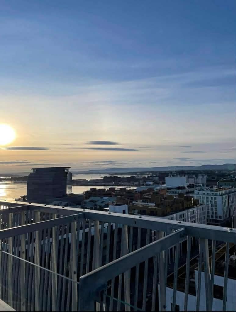 Rommet kommer møblert med et stort klesskap, en hylle og seng. I tillegg er resten av leiligheten møblert og har hvitevarer, og kjøkkenet er godt utstyrt med det du måtte trenge. Leiligheten følger med en stor og nydelig takterrasse med utsikt over hele Oslofjorden. Strømregning kommer utenom husleien, og ligger som regel mellom 150 og 250 kr i mnd per person.