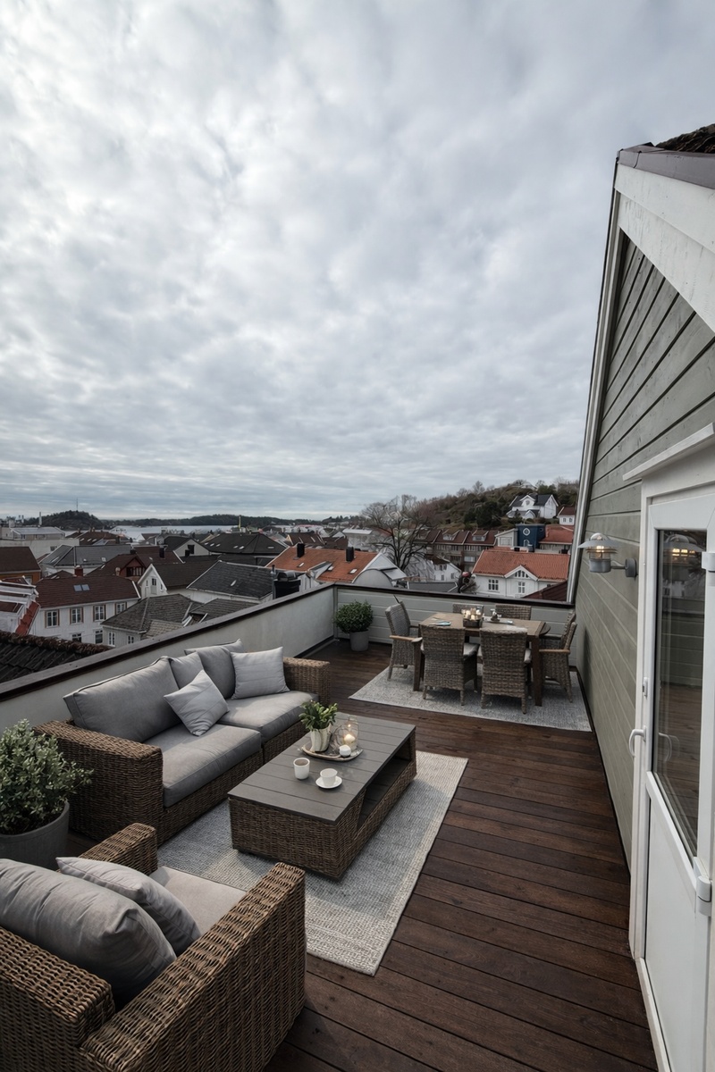 Her får du muligheten til å flytte inn i et nyoppusset og moderne kollektiv midt i sentrum – med fantastisk sjøutsikt fra en stor og solrik terrasse.