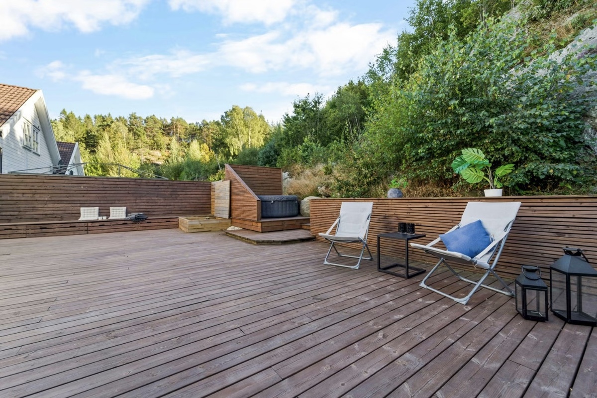 Stort kjøkken med åpen løsning, mot tv og spisestue, stor balkong med utestue, mspa og grill plass, alt dette i 2 etasje.