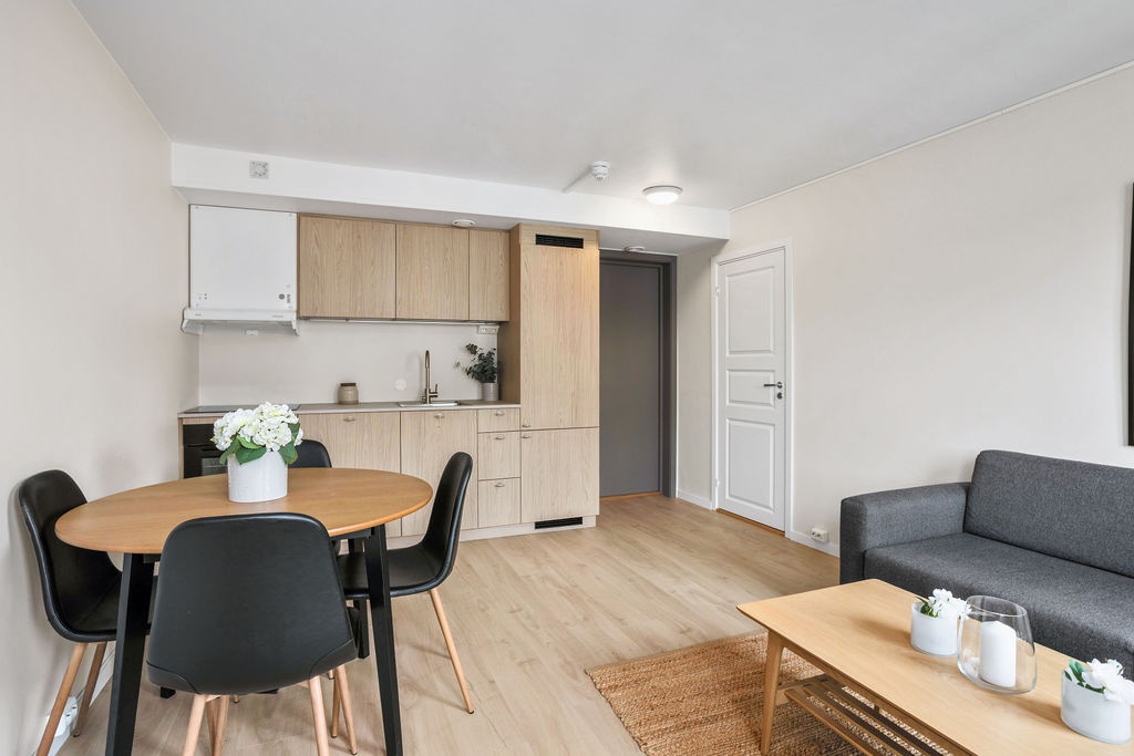 Leiligheten er lys og praktisk utformet, og passer godt for én person eller et par.