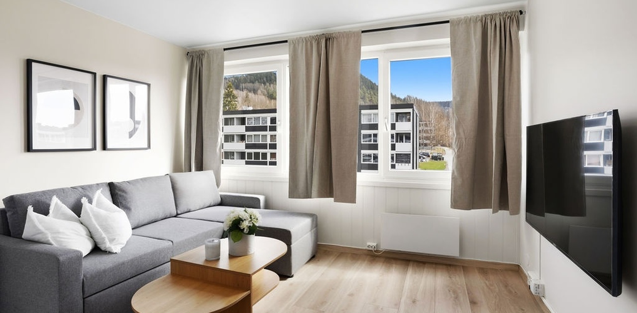 Leien inkludere møbler, kjøkkeninventar, internett og parkering.