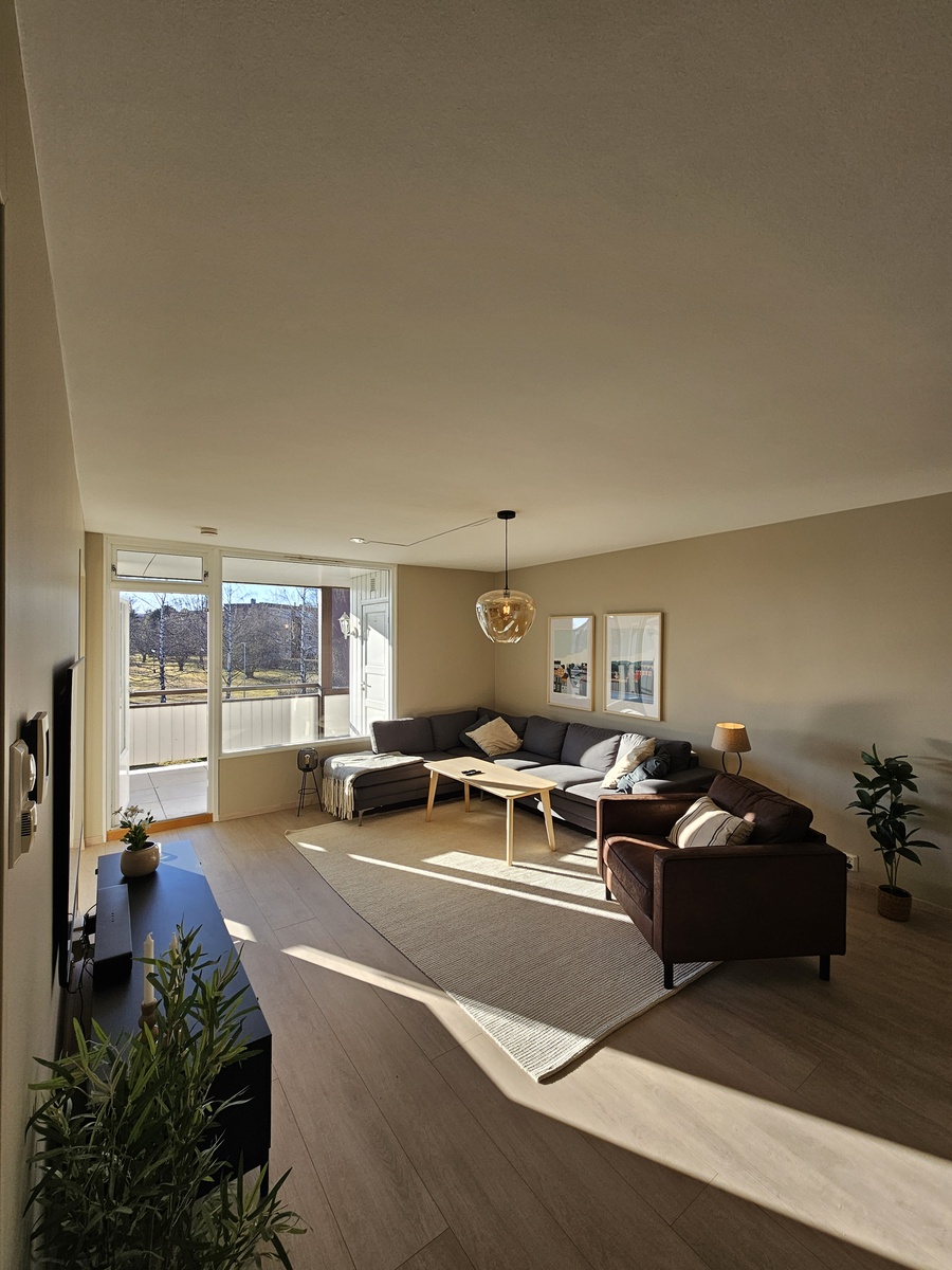 Leiligheten er moderne og nylig pusset opp. Den ligger sentralt med svært gode bussforbindelser. Nærmeste bussholdeplass ligger 50m fra ytterdøren. I umiddelbar nærhet ligger blant annet Bunnpris Gourmet, Valentinlystsenteret og Strinda Videregående skole. Leiligheten er fullt møblert med moderne interiør, kombi-vaskemaskin, oppvaskmaskin, kaffemaskin, induksjonstopp, 65" Samsung TV, varmekabler i ALLE rom m.m. Leiligheten har egen privat parkeringsplass med lademulighet. Det er en stor bod i kjeller + bod ute på verandaen. I kjelleren er det og eget rom for parkering av sykler/sparkesykler.