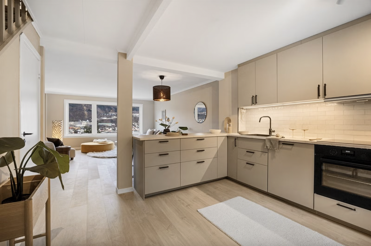 Flott utsikt over Bergensdalen og gangavstand ca. 10 min til treningssentre, butikker, kafeer m.m like i nærheten ved Danmarksplass. Turområde med et av de mest kjente byfjellene, Løvstakken, like bak. Her ligger byens beste tursti, Løvstien, som ble ferdig i 2024. Mulighet for parkering i gaten.