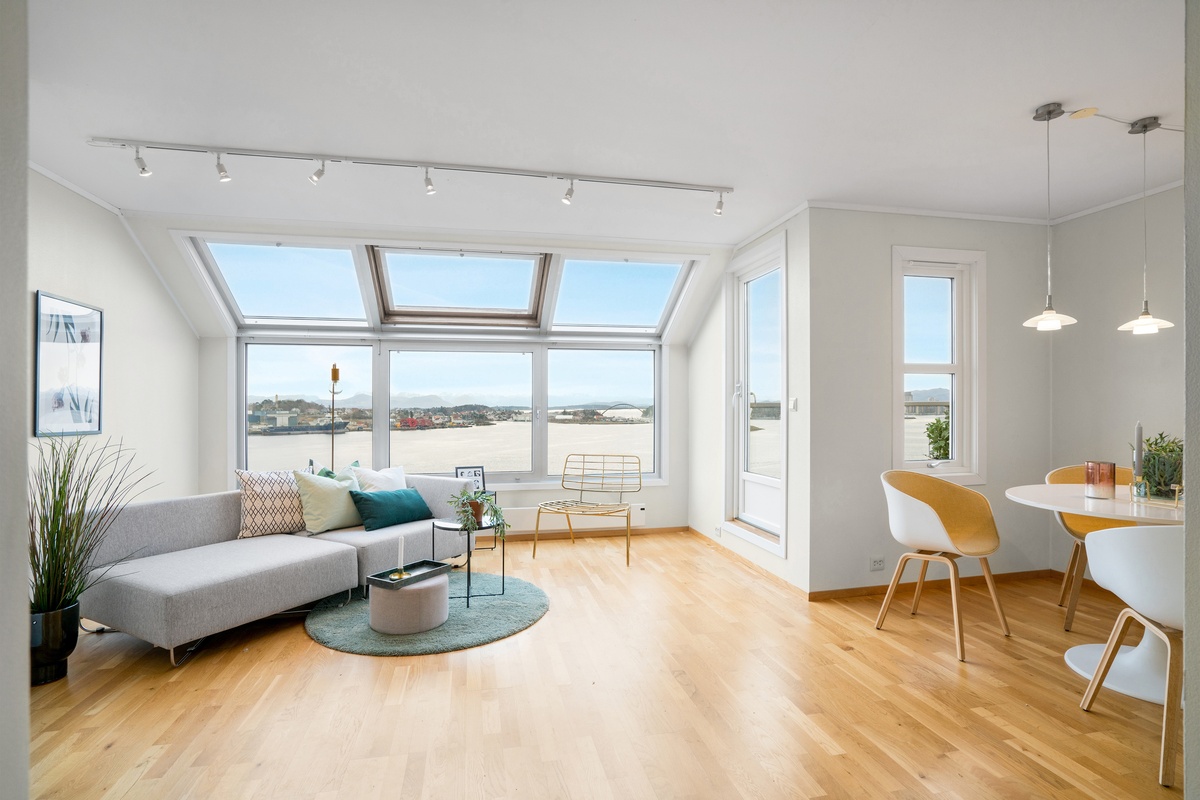 Denne boligen på 77 kvm har en klassisk planløsning med mye naturlig lys og en enestående utsikt over innseilingen til Stavanger.