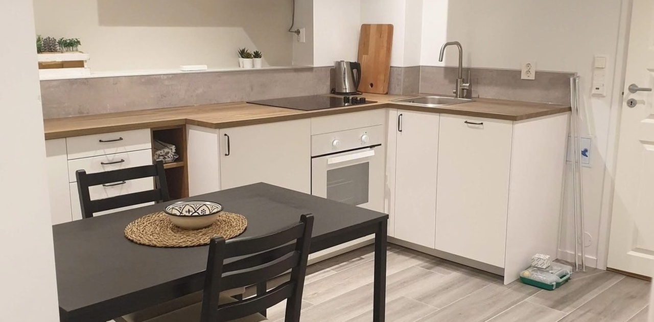 Leiligheten har egen inngang, består av 2 soverom, hvorav et kan benyttes som stue om ønskelig. I tillegg til kjøkken og bad med vaskemaskin. Leiligheten har også en innvendig bod av god størrelse.