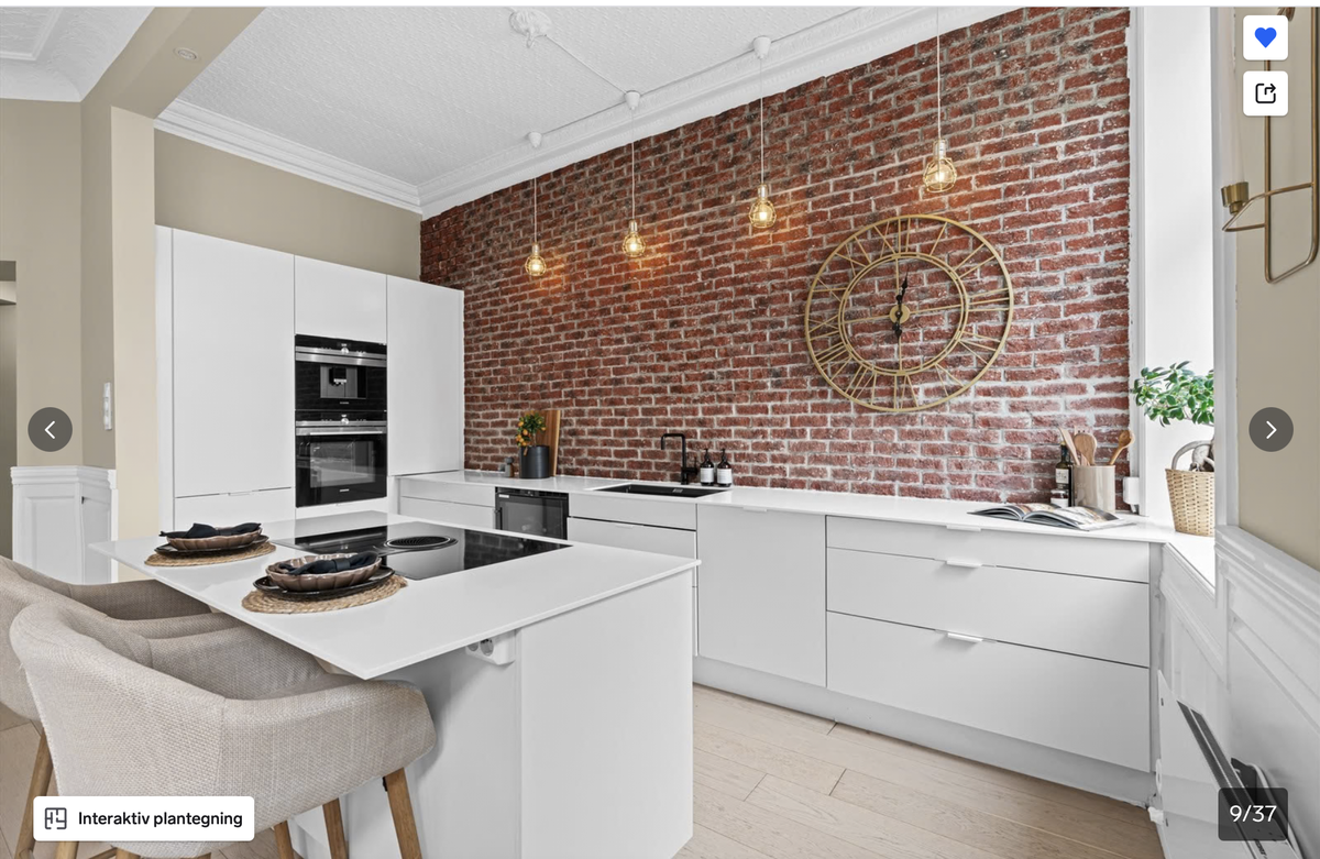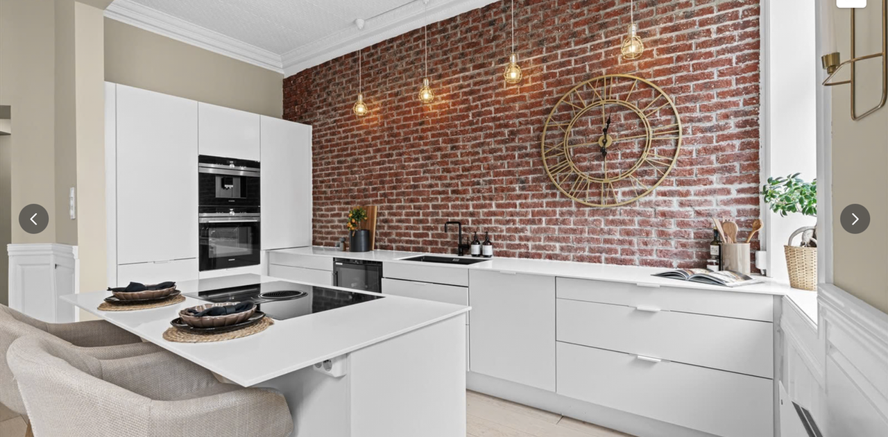 Leiligheten ligger i en høy 1. etasje og har en fantastisk romfølelse med generøs takhøyde (3,14 m), store vindusflater og vakker stukkatur. Her kombineres klassisk arkitektur med moderne løsninger på en svært gjennomført måte.