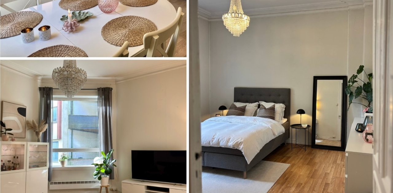 Leiligheten ligger helt sentralt i Bergen sentrum, der det er gåavstand til det meste. Samlet areal på leiligheten er 123 kvm, og med en takhøyde på 3 meter gjennomgående, oppleves den veldig lys og stor. Det er totalt 5 soverom, stor stue og kjøkken, samt ett bad som ble pusset opp i 2024. Ellers følger det med to kjøleskap, tørketrommel og vaskemaskin.