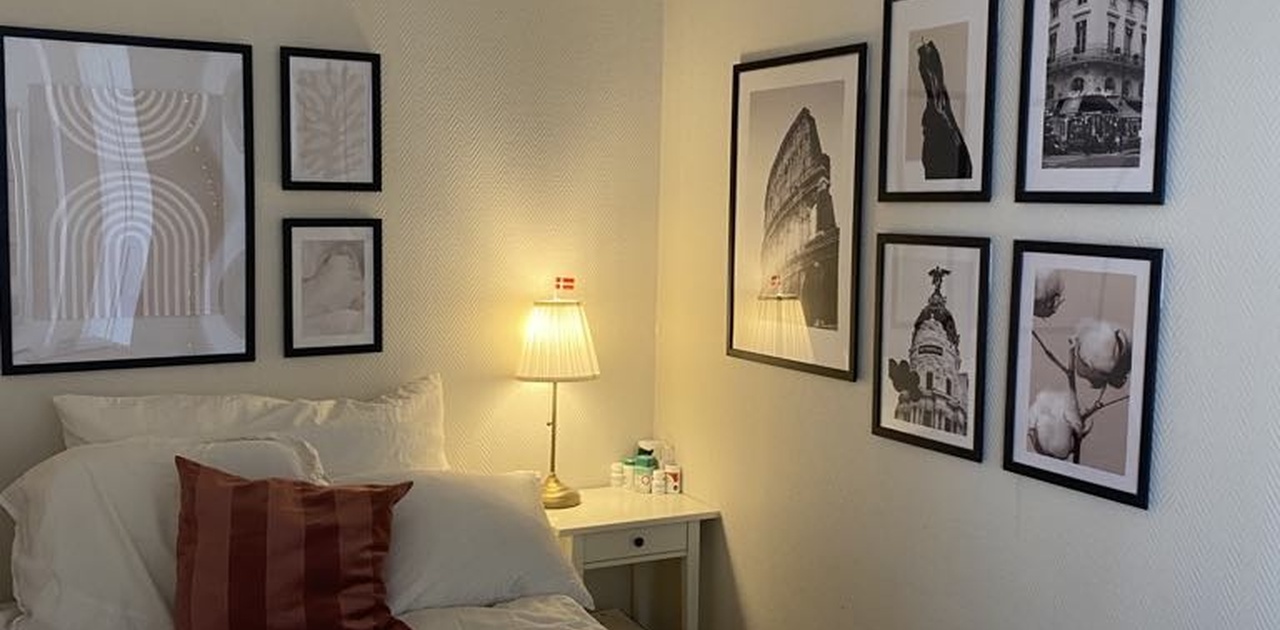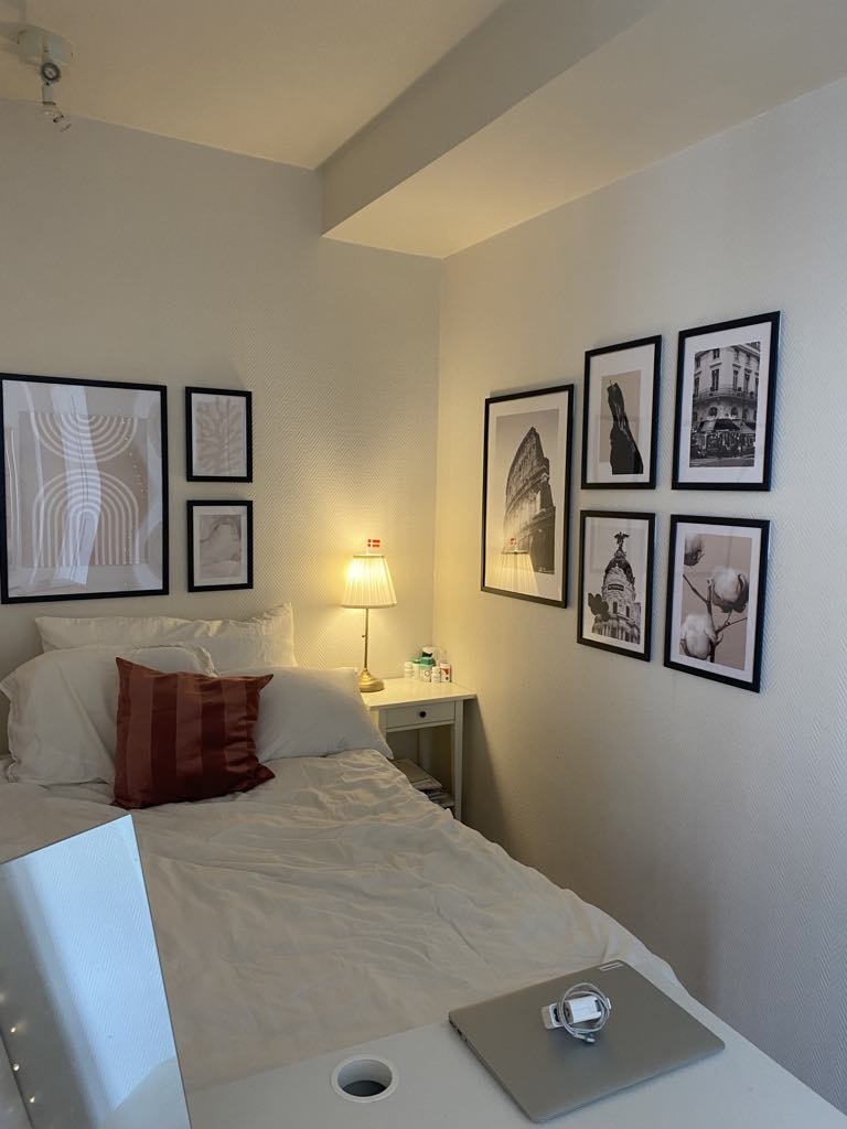 Rommet er lyst og fint. Kan komme møblert med seng og skap(må kjøpes). Leiligheten har også en hyggelig og åpen stue- og kjøkkenløsning. Det er vaskemaskin, oppvaskmaskin og tørketrommel. Butikken er 30 sekunder unna utgangsdøren.
