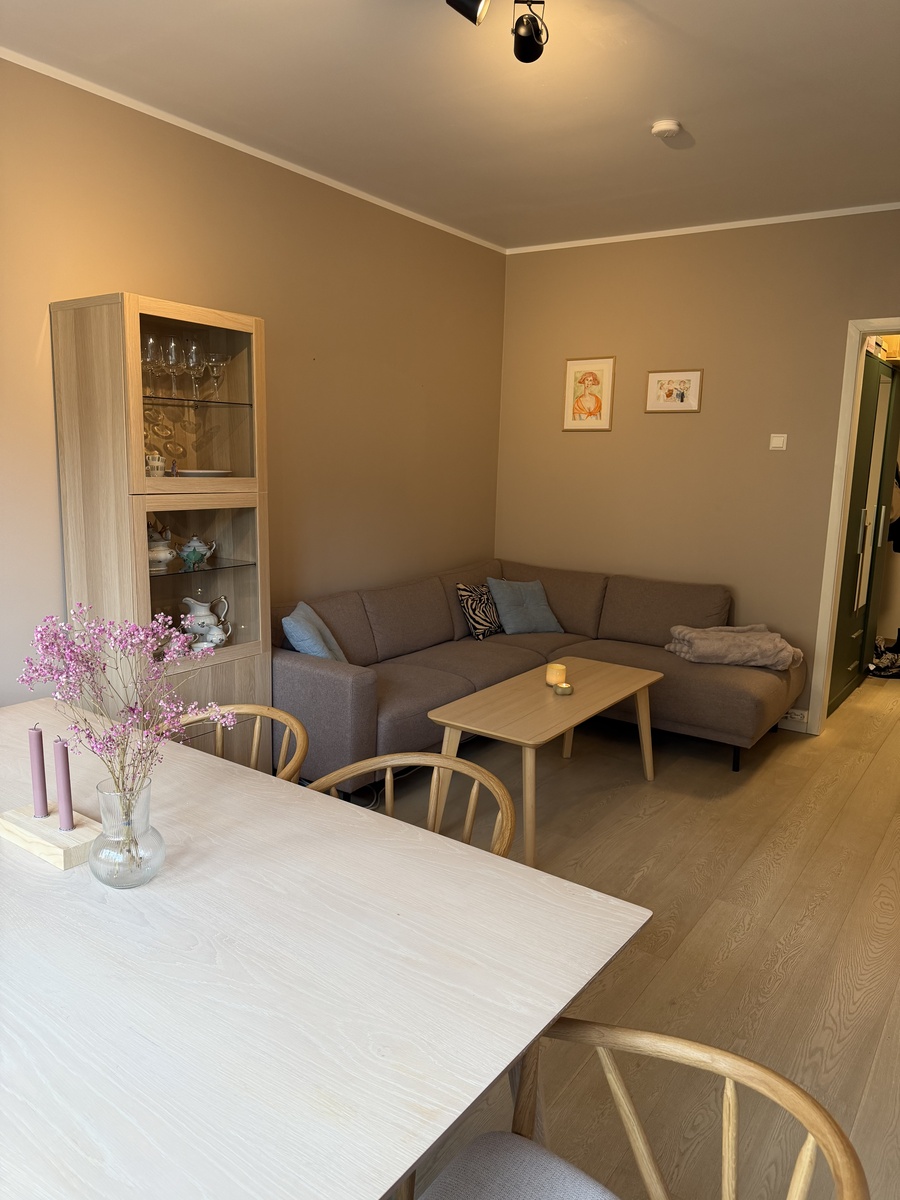 De fleste bildene er fra jeg kjøpte leiligheten i fjor, så noen oppgraderinger er gjort. På kjøkkenet er det satt inn nytt kjøleskap og mikrobølgeovn, og annet kjøkkenbord enn bildene. På badet er det satt inn en liten vaskemaskin, i tillegg til tilgang til felles vaskekjeller med vask og tørk. Bildene fra stua er tatt med nåværende innredning.