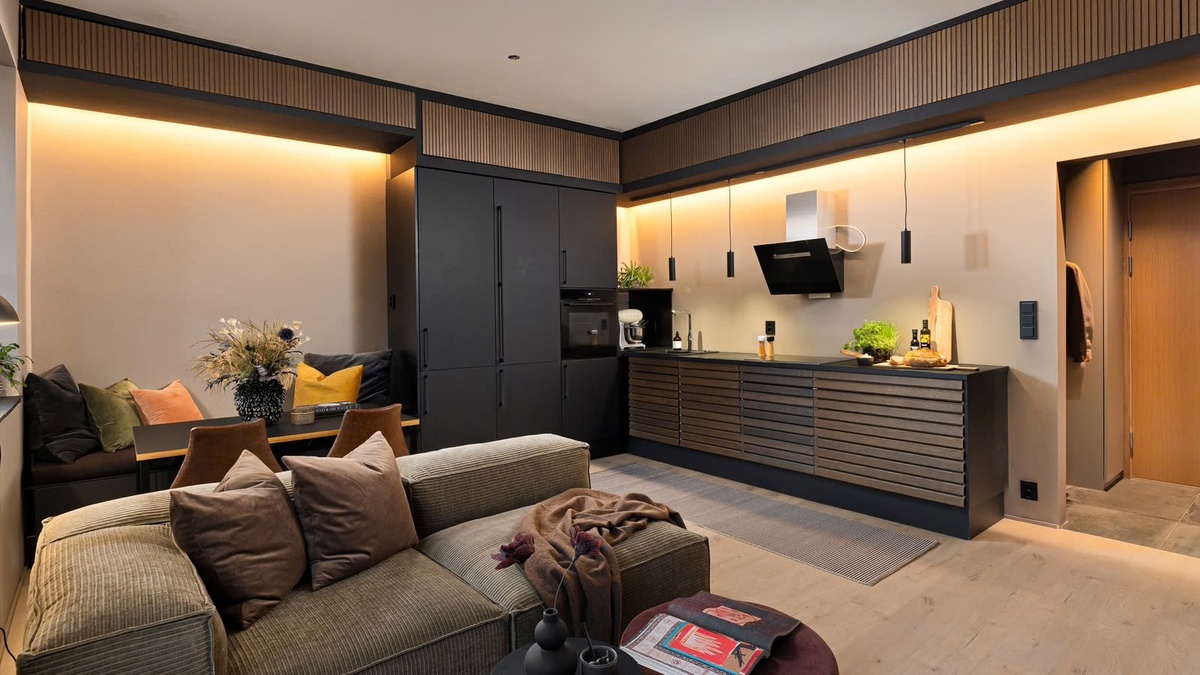 - Hvitevarer - integrert (kombi kjøl/frys, oppvaskmaskin, koketopp, stekeovn og ventilator.