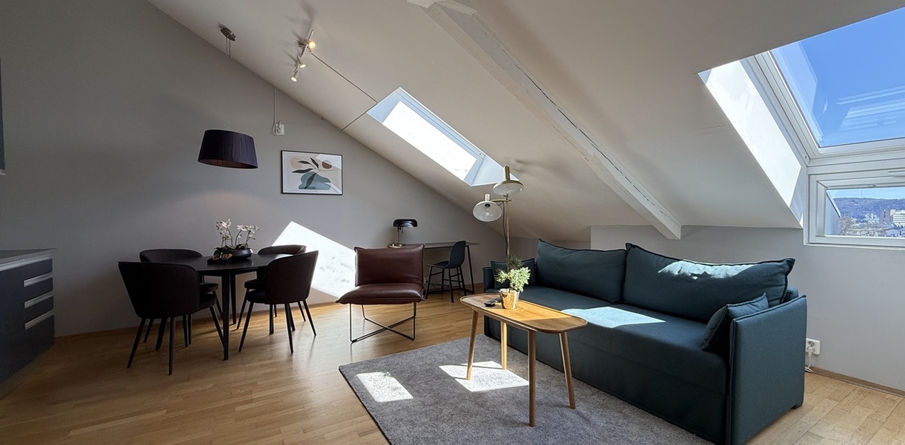 Møblert som på bildene. Kjøkken hvitevarer som er integrert medfølger. Andre hvitevarer som måtte stå i leiligheten kan brukes av leietaker i leieforholdet, men byttes ikke ut av utleier dersom defekt.