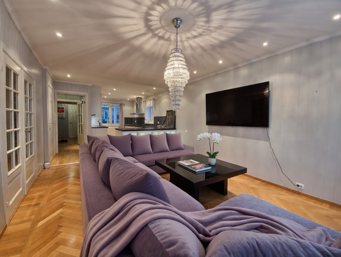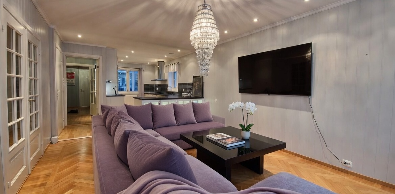 • Fullt utstyrt HTH-kjøkken med to ovner, induksjonstopp, airfryer, kaffetrakter, mikro, oppvaskmaskin og stort kjøl/frys