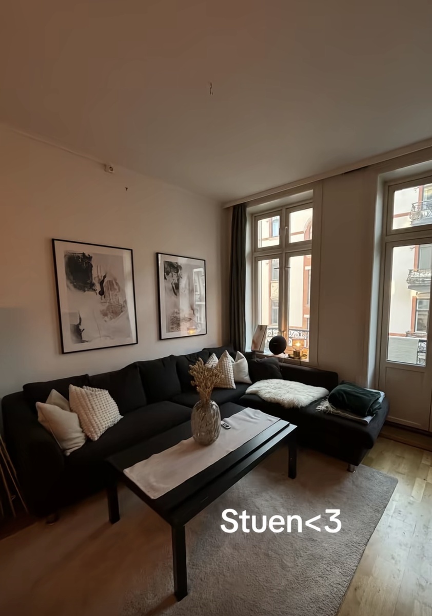 Leiligheten ligger i 3. etasje og holder gjennomgående god standard. Den har romslig fellesstue, skikkelig god takhøyde og en lys og luftig atmosfære. Boligen er godt vedlikeholdt og fungerer svært godt som kollektiv. Særlig fordi soverommene er i gangen, adskilt fra fellesrom. Leiligheten er på ca. 110 kvm, og har et stort fellesområde med kjøkken/stue, en hyggelig balkong, et toalett og et bad med vaskemaskin, dusj og badekar.