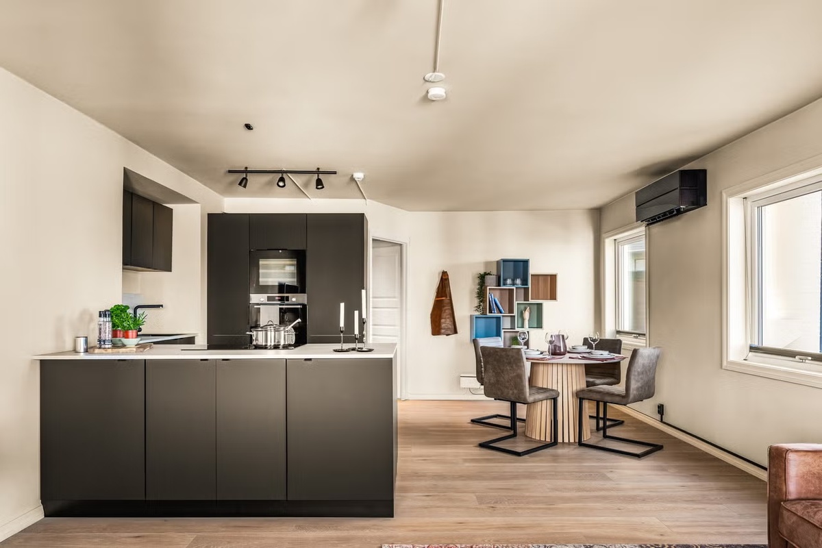 Leiligheten holder en pen standard med moderne kvaliteter fra 2021/2022. Her får du lyse og gode rom, flott utsikt over Byfjorden og Sandviken, samt en effektiv planløsning som gjør boligen godt egnet for deling.