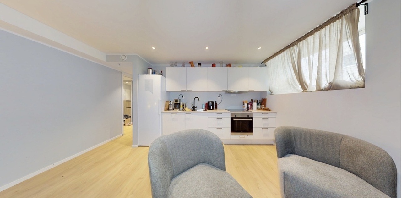 Leiligheten har gode fellesarealer med åpen stue- og kjøkkenløsning, samt moderne bad med vaskemaskin og ny tørketrommel. Kort vei til sentrum, kollektivtransport, UIB og BI.