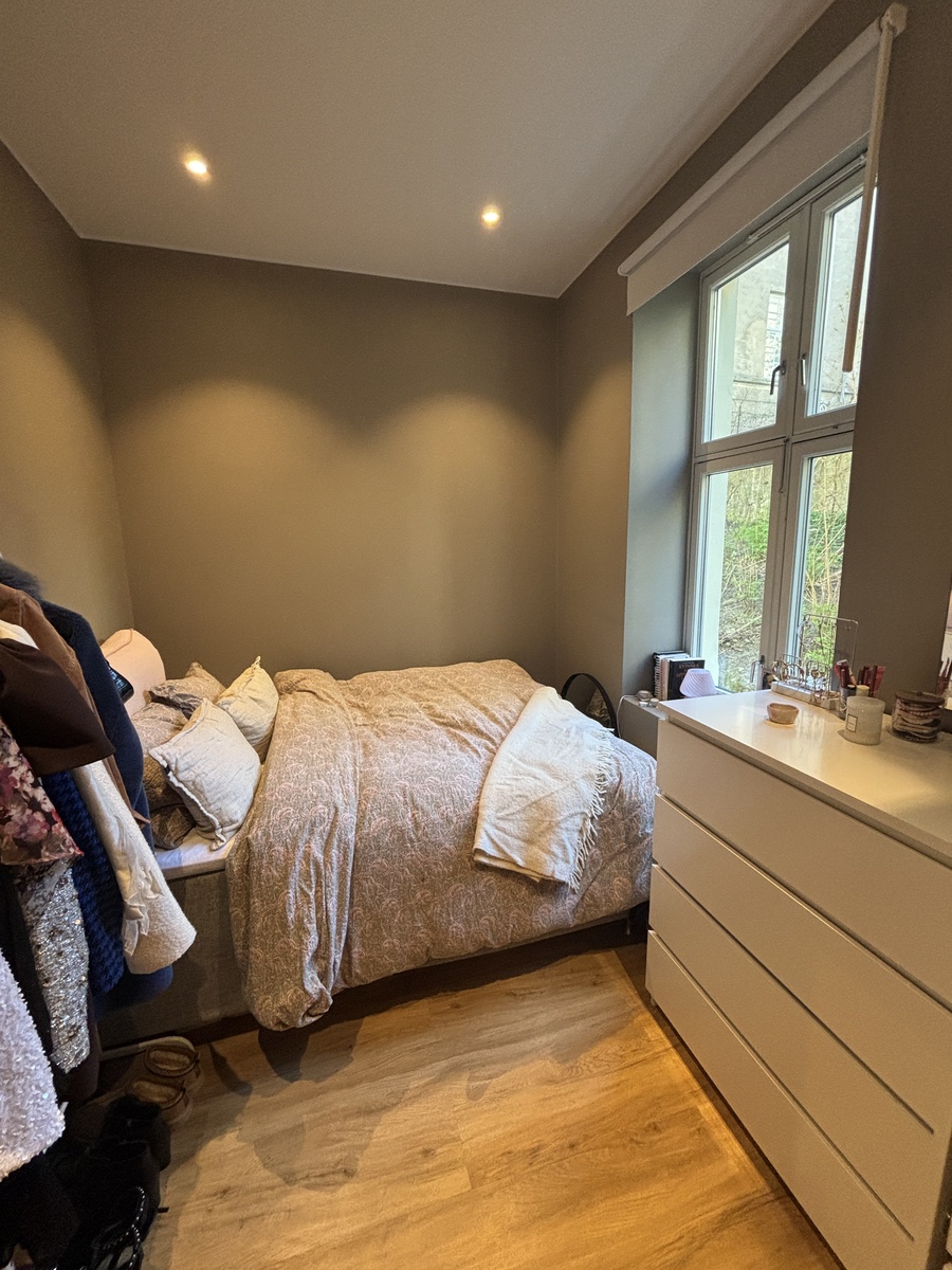 ☀️ Lyst rom med plass til seng, skrivebord og garderobe