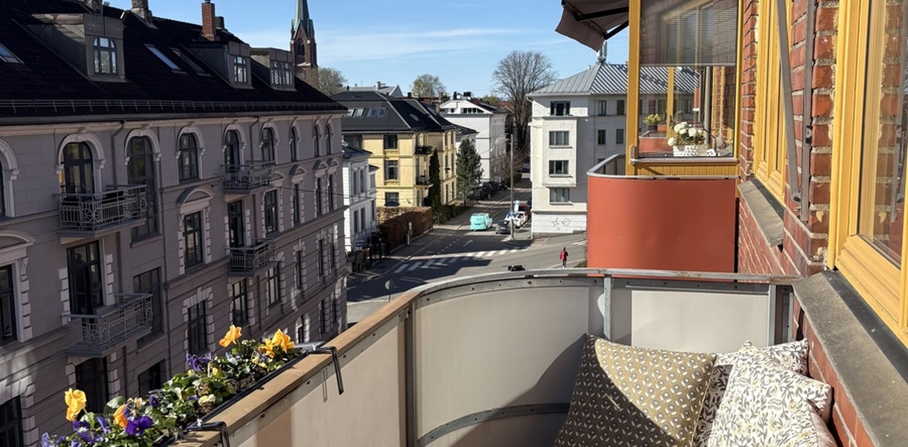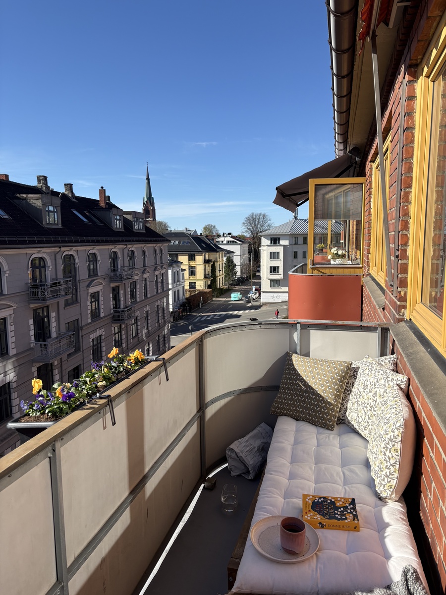 Jeg leier ut leiligheten min i hjertet av Oslo (vil jeg si) i juli. Den har to soverom, det ene med en 150 seng, det andre med en uttrekkbar seng. Åpen stue-kjøkken-løsning med et stort spisebord. Balkongen har sol fra morgen til ca 18 på sommeren, så her er det mulighet for noen gode kaffekopper:)