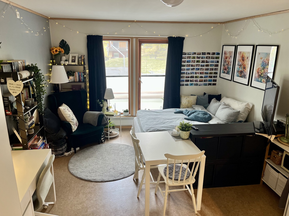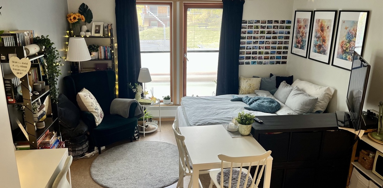 Leiligheten skal fremleies fra juni 2026 til juli 2027, da jeg skal på utveksling. Leiligheten tilhører Nedre Singsakerslette studentby, som ligger mellom Trondheim sentrum, Studentersamfundet og NTNU Gløshaugen. I tillegg er Idrettsbygget Gløshaugen, Bunnpris og Pizzabakeren nærmeste nabo. Strøm, varmtvann og internett er inkludert i husleien. Leiligheten leies ut møblert. Dette inkluderer: