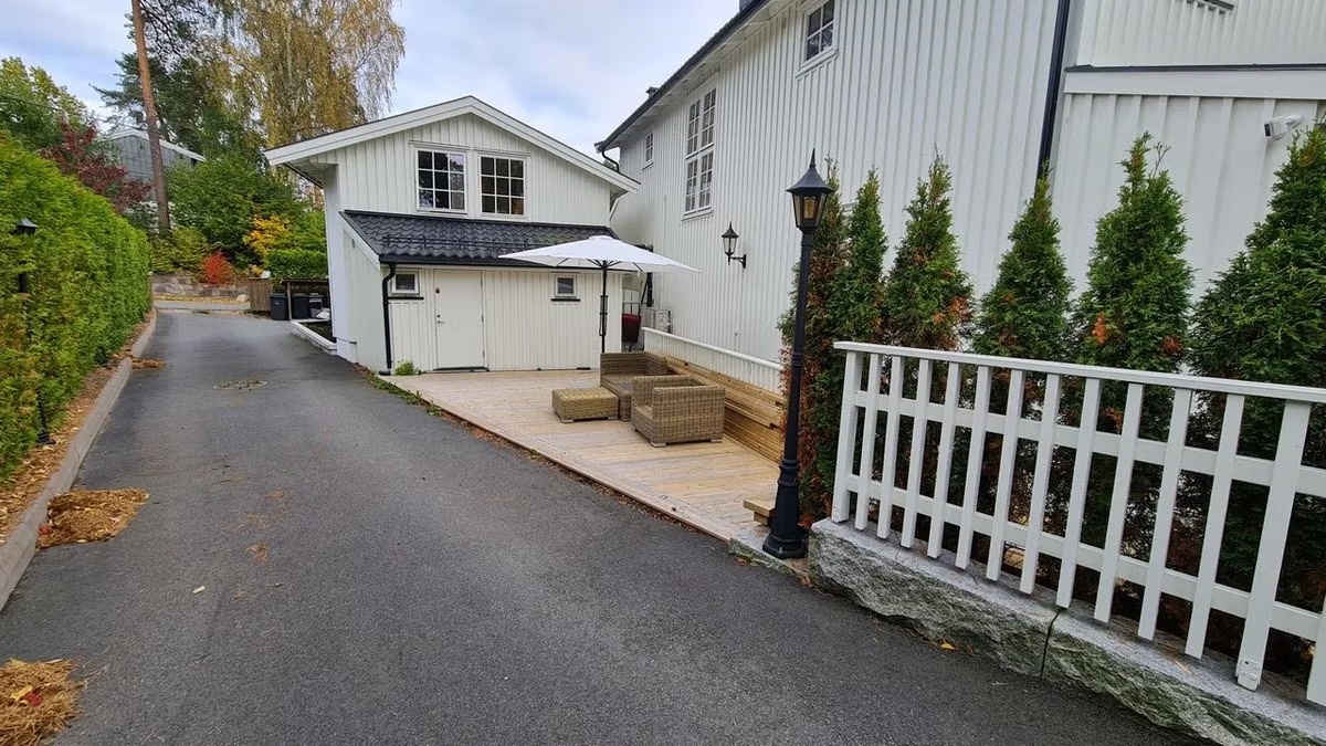 Terrasse på utsiden, som er privat for denne leiligheten.