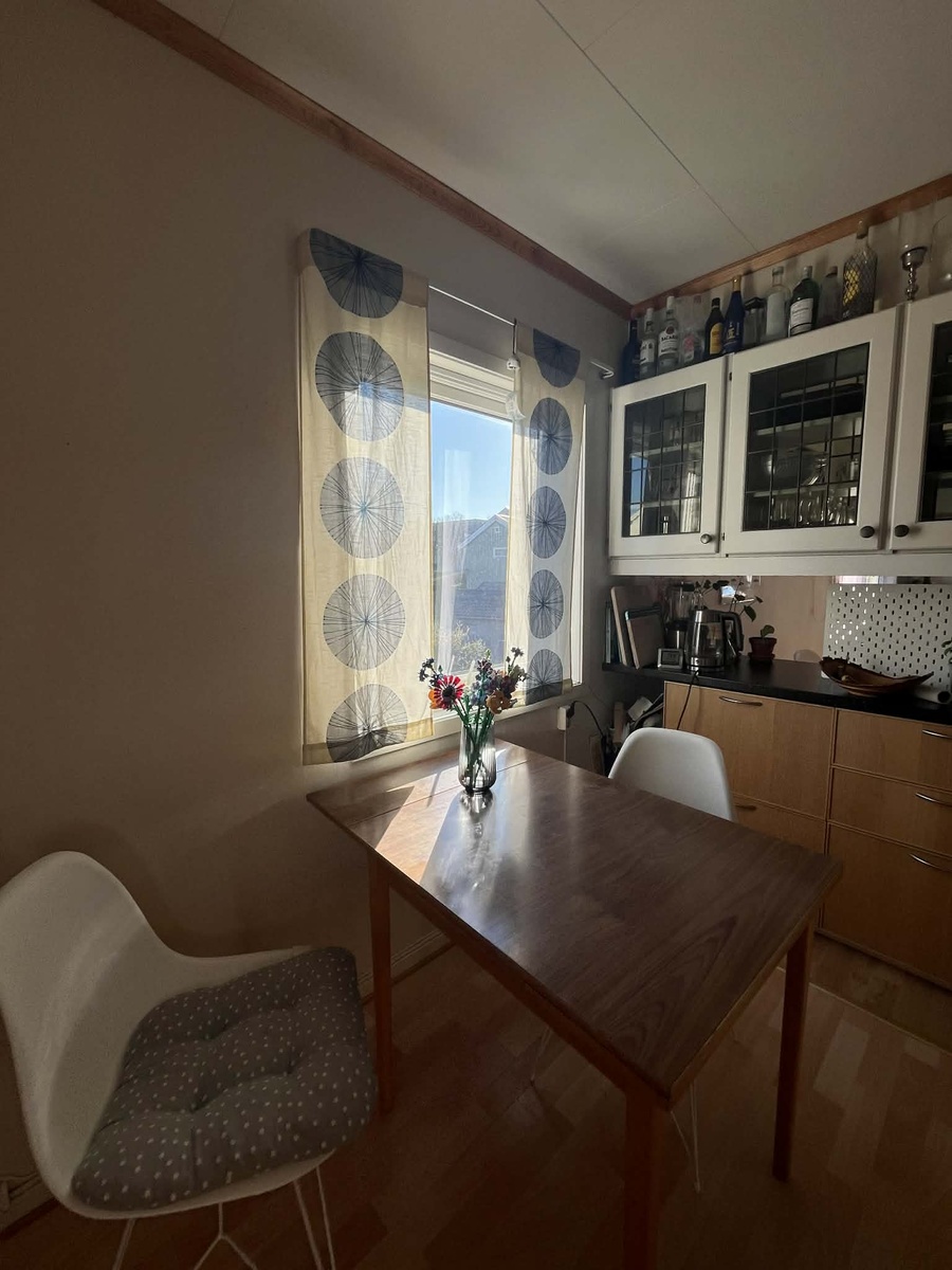 Vi har bodd sammen her i to år og trives veldig godt, både i leiligheten og med kollektivet. I hverdagen liker vi å gjøre sosiale ting sammen, som å gå tur, lage felles middag, se film eller serier, og ha spillkveld. Vi setter også pris på et vors eller vinkveld innimellom, samtidig som vi også liker rolige kvelder. Det er viktig for oss å ha det ryddig og rent rundt oss, og ønsker gode rutiner for dette.