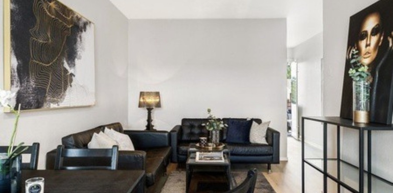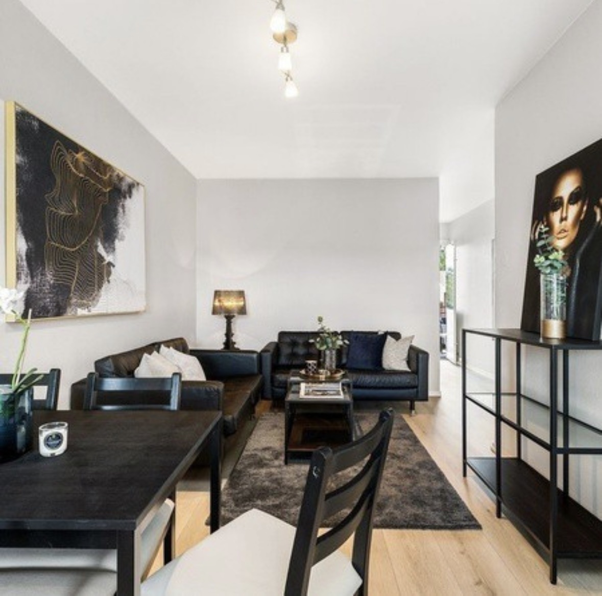 - Fellesarealet består av en koselig stue med to sofaer, spisebord og kjøkken. I tillegg har vi en søt balkong med hagemøbler og en liten grill.